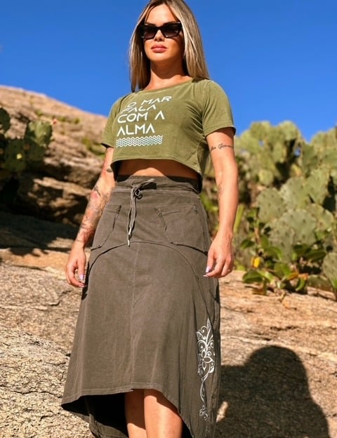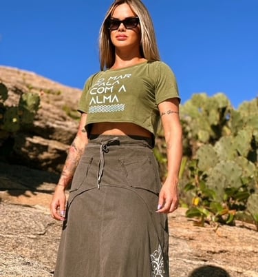 Feita com tecido de alta qualidade 100% algodão, nossa camiseta, cropped, vestido e shorts são leves e confortáveis o suficiente para acompanhar você em todos os momentos. Você encontrará na