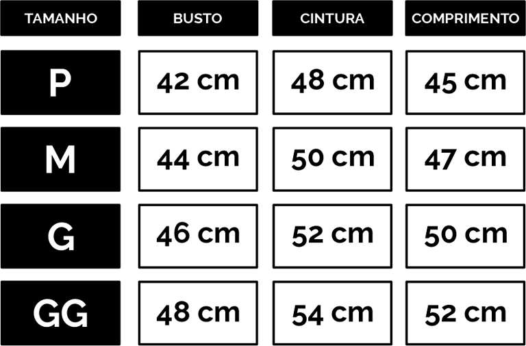 confira as medidas das nossas peças.